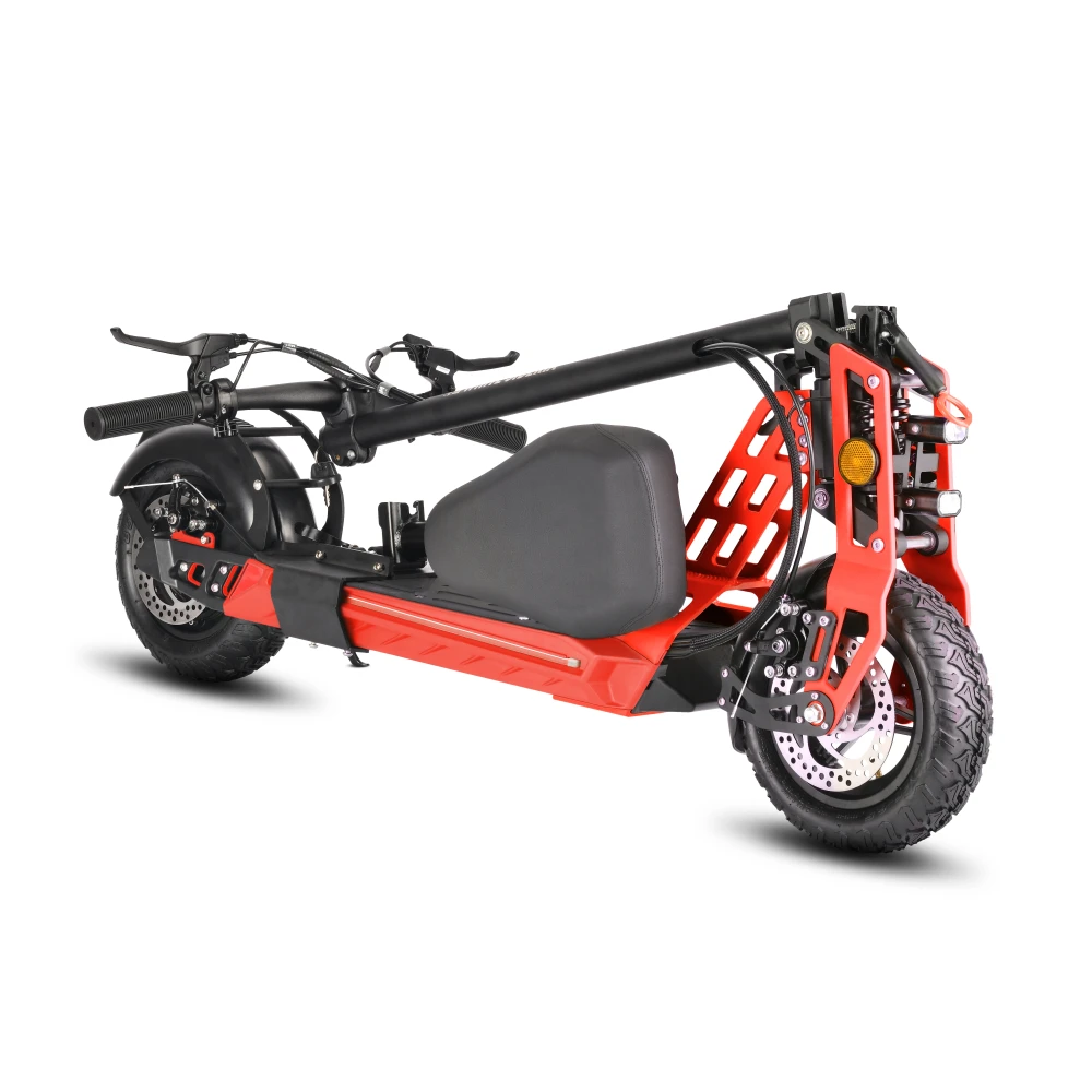 Также эта модель отличается наличием сиденья и колес большого диаметра в 11 дюймов. Она складывается, поэтому вам даже не понадобится парковочное место - девайс можно хранить дома!