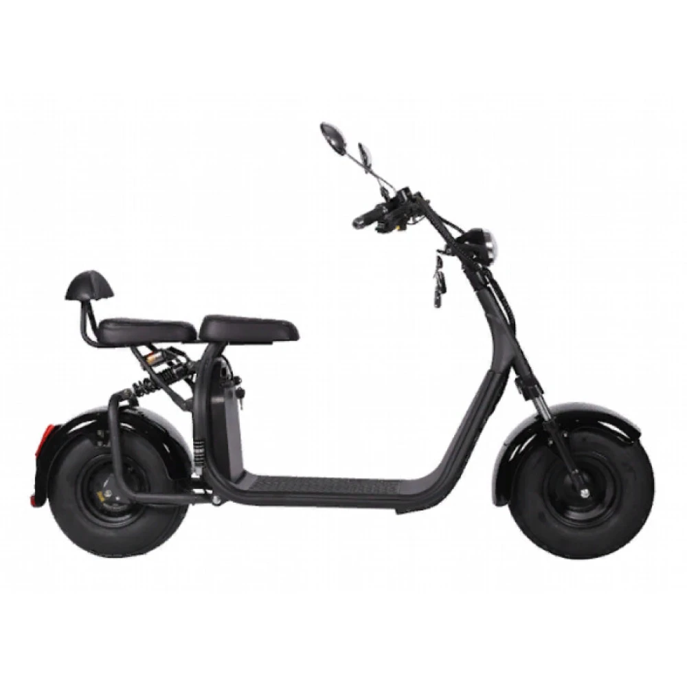 Электроскутер CityCoco Kugoo C2 PRO - усовершенствованный вариант уже полюбившейся и хорошо зарекомендовавшей себя модели. В данной модификации производители предусмотрели более мощный двигатель и аккумулятор. Теперь электроскутер быстро и плавно разгоняется до 45 км/час, легко преодолевает препятствия и подъемы. Одного заряда батареи хватает для преодоления 45-ти километров пути. Этого вполне достаточно для поездок в течение всего дня. Главным преимуществом данной модели является дополнительное сидение для пассажира. Улучшенная амортизация и усиленная подвеска позволяют пользоваться электроскутером вдвоем, что значительно расширяет область его применения. Благодаря широким 8-ми дюймовым колесам, ездить на электроскутере возможно не только по ровным городским улицам, но и по бездорожью. Данная модель оснащена качественной системой освещения. Яркая передняя фара, задние габаритные огни и поворотники повышают безопасность движения в темное время суток и предупреждают других участников движения о совершаемых маневрах. Надежные гидравлические тормоза чутко реагируют на команду райдера и гарантируют быструю остановку электроскутера Kugoo C2 PRO в экстренной ситуации.
