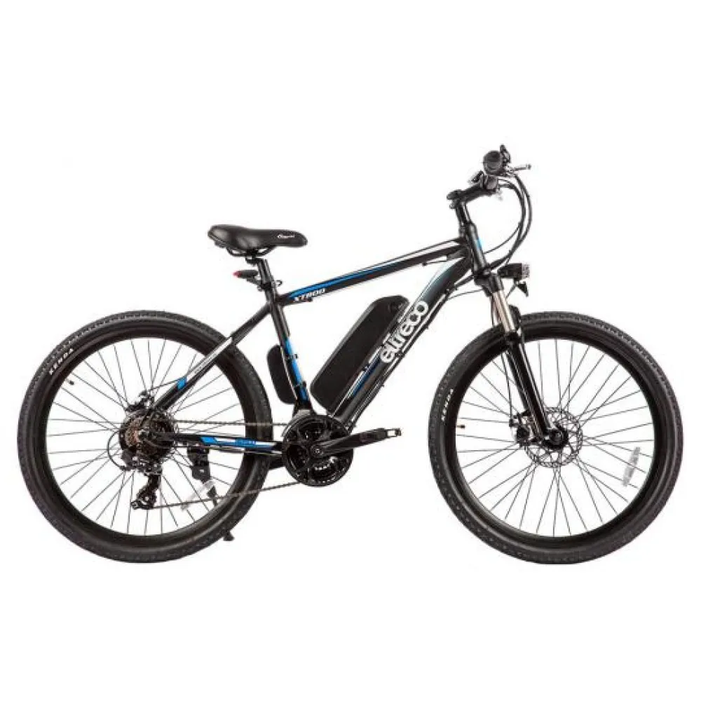 Eltreco XT-800 оснащен емким аккумулятором 10 А*ч, благодаря такому заряду агрегат может преодолевать до 70 км пути, в зависимости от выбранного скоростного режима и нагрузки. Максимальный вес для этой модели 110 кг, его масса 23 кг. Для пополнения заряда батареи потребуется 6 часов. Зарядное устройство идет в комплекте с велосипедом.